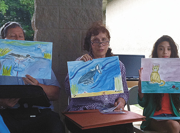 A Maui Kindness Club Watercolor Keiki Art Exhibition took place at Kalama Park in Kihei. Seven artists ranging in age from 6 to 12 and their families enjoyed special paintings of animals created in a nine-week course taught by Barbara Steinberg, BFA. Sofia Bews (photo below) presents her art piece that demonstrates our guardianship of Sea creatures. The next Art Class beginning soon. Call (808) 269-6845 for more information. (Co-sponsored by Maui Parks & Recreation)