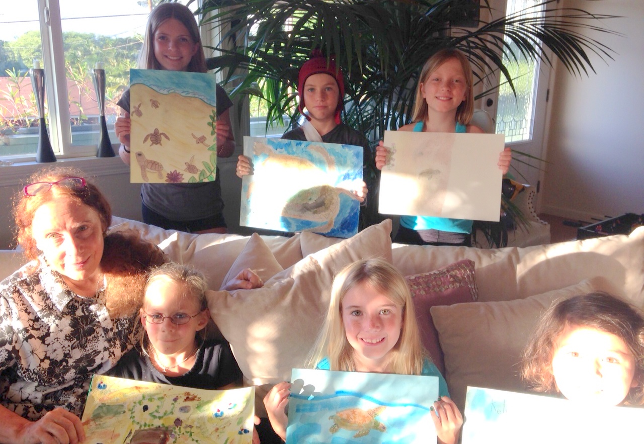 As Founder and Director of The Maui Kindness Club, Barbara had coordinated guest Speakers to help guide the children in better understanding the native species of local plant species on Maui while she taught them to draw and paint the animals and plants they learned about in their native living environments. This program became more popular as family members sent their children in to participate in the 36 class ongoing program which lasted for nearly a full year period. In many cases the siblings of current students would join these classes when they became of age in later years. Many parents would report that their child became award winning Artists and even successful Career Artists during the period of Barbara's teaching tenure on Maui over a 25 year period. Her husband Jonathan Orlowski has been a teaching assistant and a great supporter for Barbara at many of these events and classes throughout the years. In 2014 the Kamalii Elementary School PTA invited Barbara to Jury an Art Show for the School in a State wide Art competition and she was successful in selecting the Award Winner for the State of Hawaii.